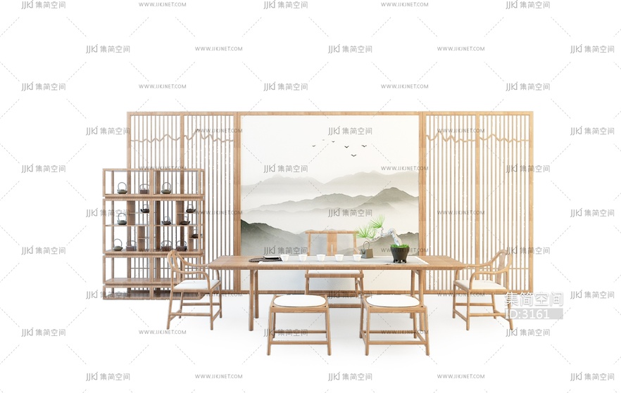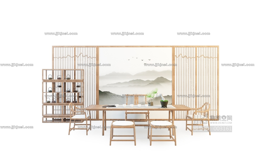 X38-0417茶桌椅组合 3d模型下载 [模型ID:3161]