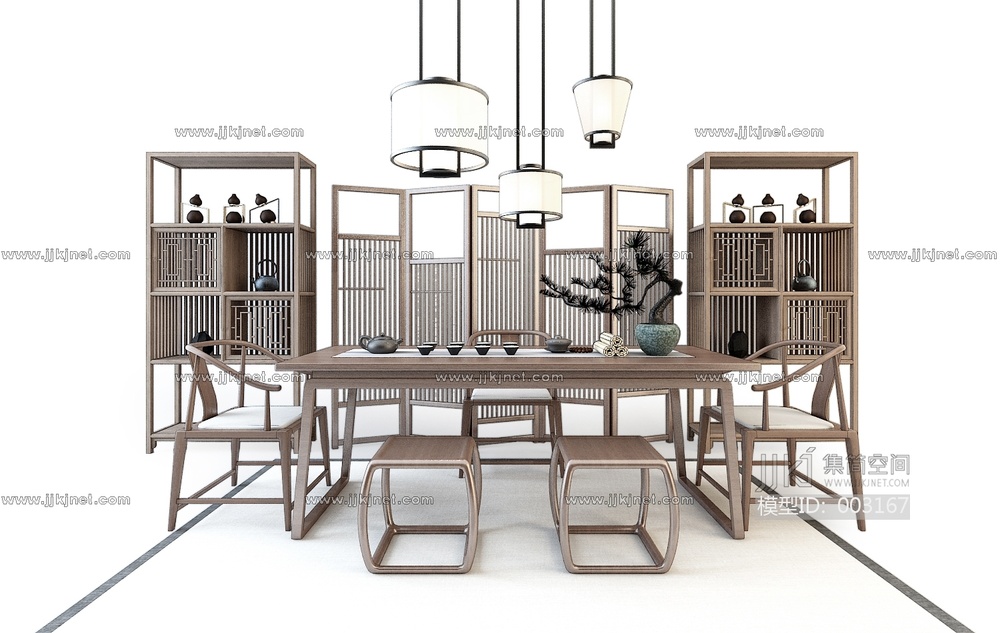 Z17-0416茶桌椅组合 3d模型下载 [模型ID:3167]