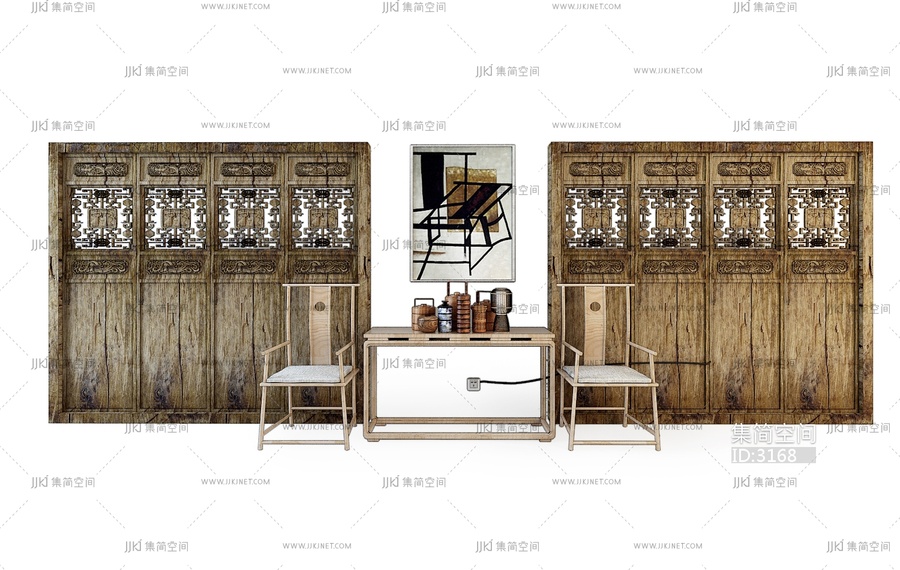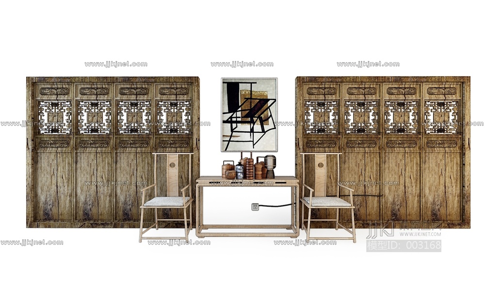 Z19-0416茶桌椅组合 3d模型下载 [模型ID:3168]