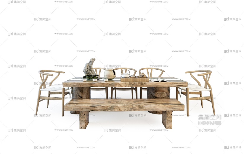 Z26-0417茶桌椅组合 3d模型下载 [模型ID:3171]