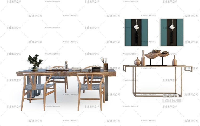 Z29-0417茶桌椅组合 3d模型下载 [模型ID:3173]
