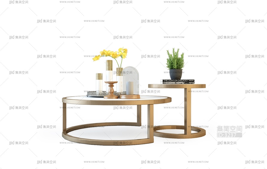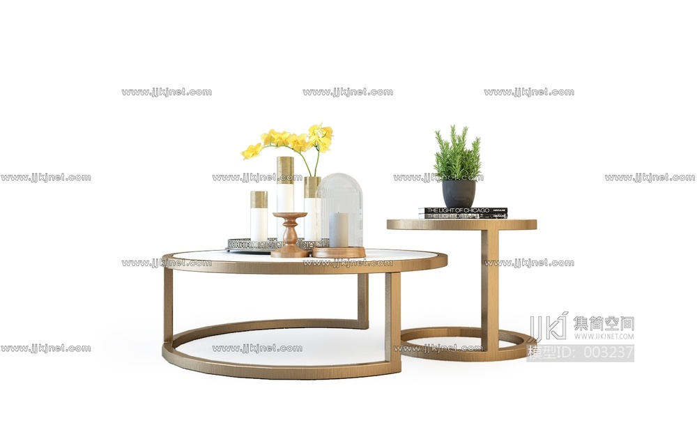 14-现代金属茶几,圆形茶几书本,花瓶摆件3d模型下载
