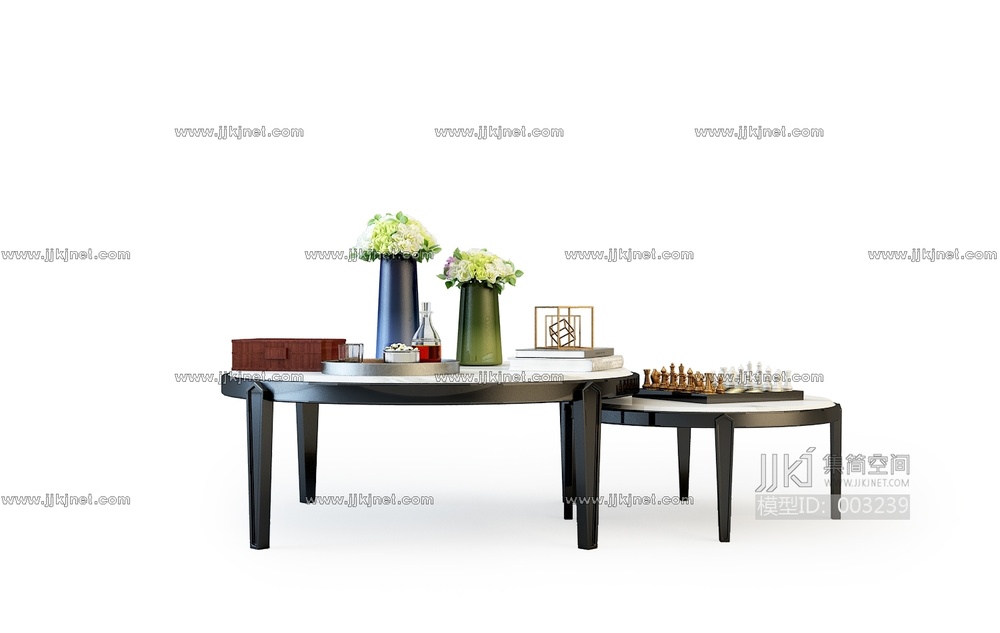 13-现代茶几圆形茶几果盘国际象棋3D模型3d模型下载