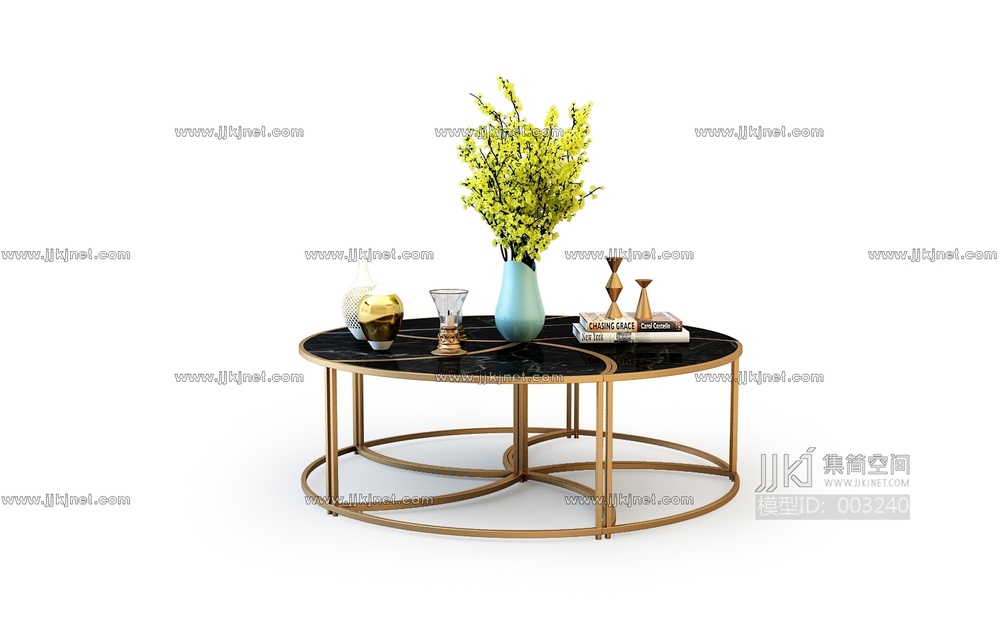 14-现代金属茶几,圆形茶几书本,花瓶摆件3d模型下载