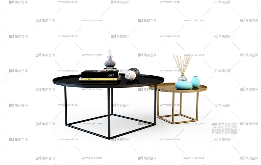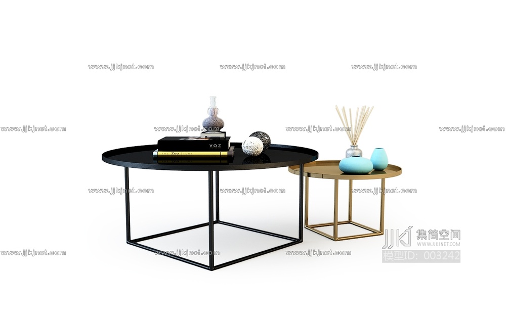 14-现代金属茶几,圆形茶几书本,花瓶摆件3d模型下载