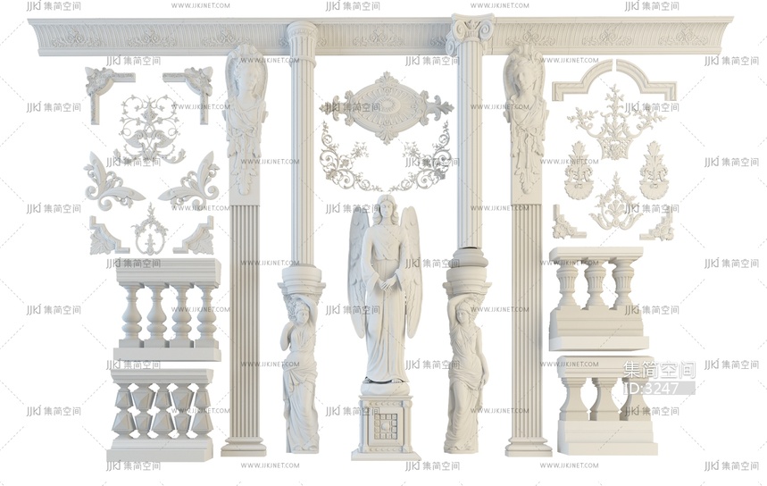 G01-0414-10欧式柱 3d模型下载 [模型ID:3247]