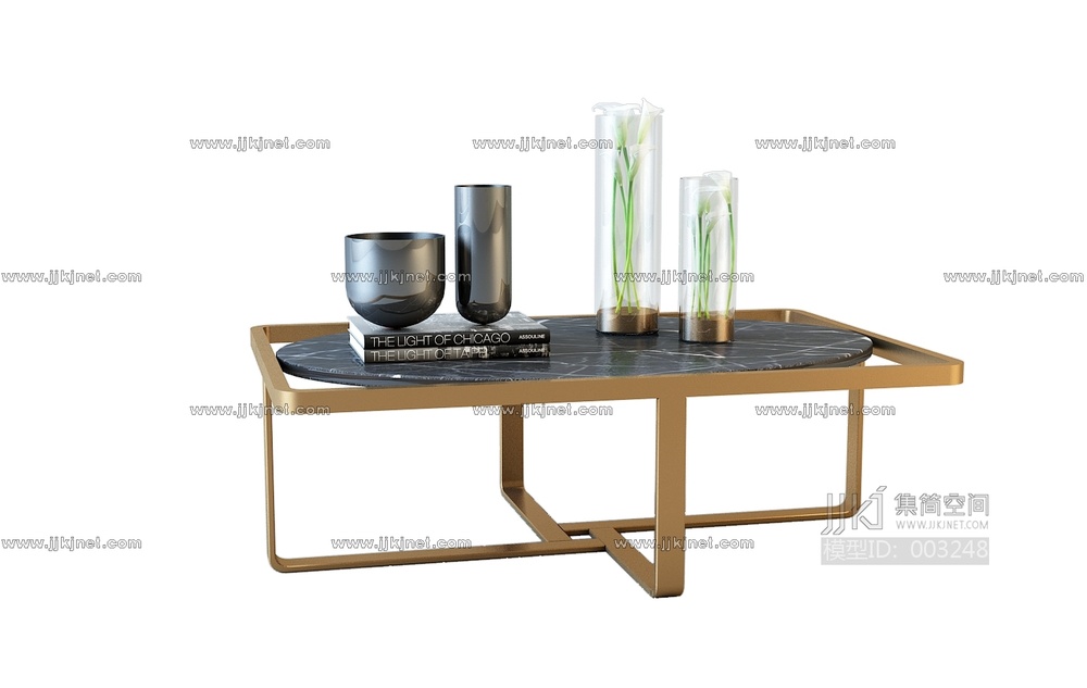 14-现代金属茶几,圆形茶几书本,花瓶摆件3d模型下载