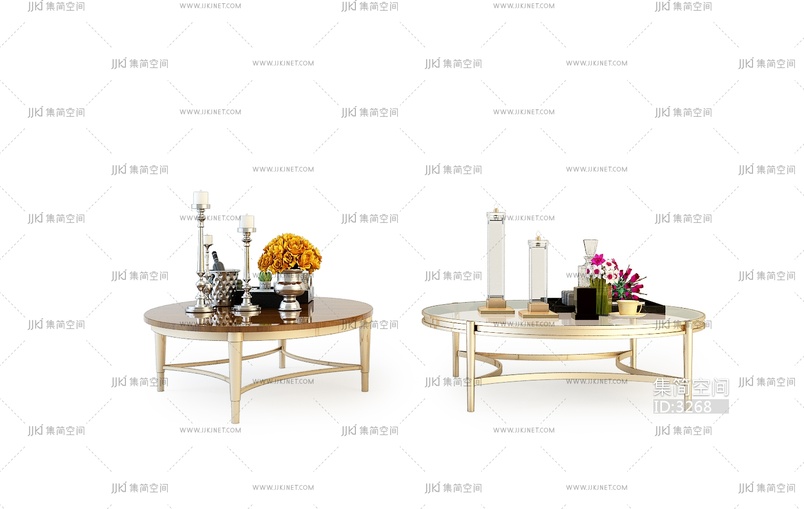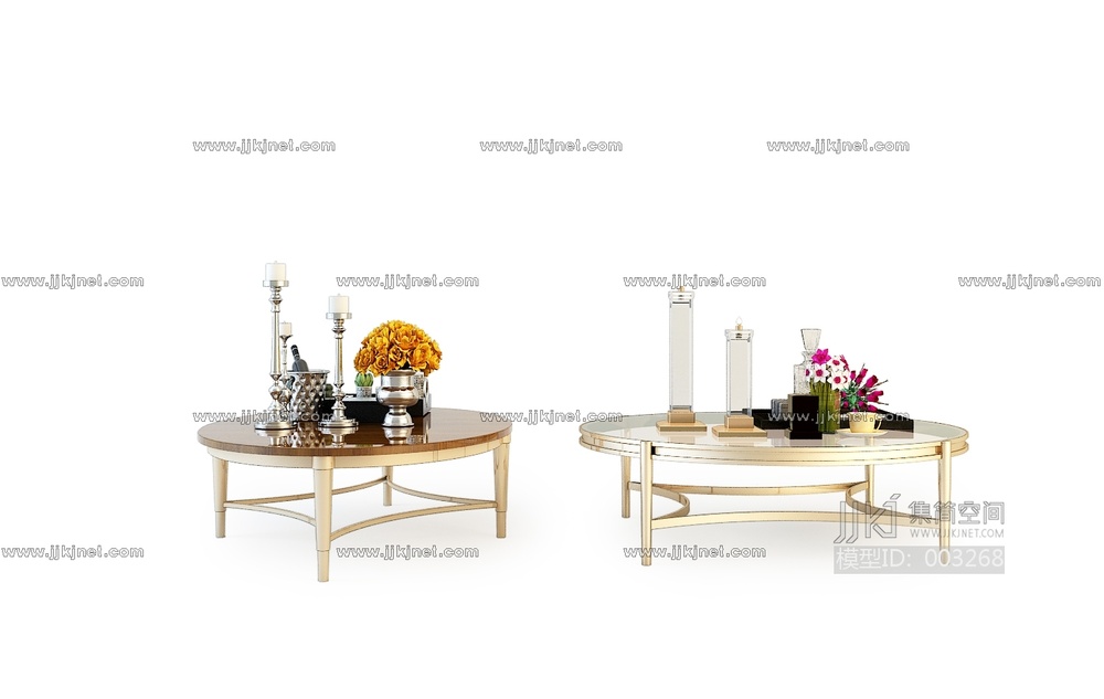 欧式茶几花瓶水壶圆形茶几法式茶几3D模型3d模型下载