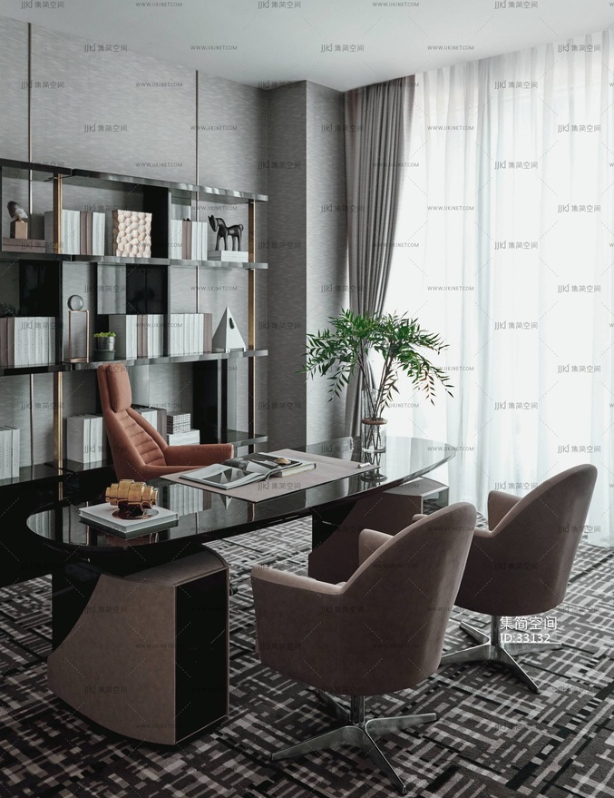 H24-0301现代总经理老板办公室班台书柜办公桌椅子书房书柜 3d模型下载 [模型ID:33132]