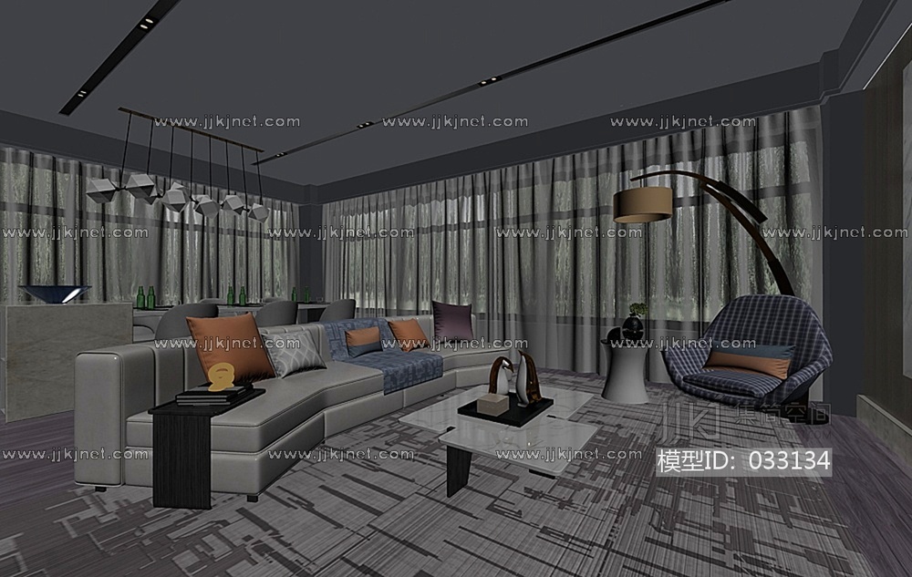H26-0301后现代弧形转角异形客餐厅沙发茶几落地灯 (1) 3d模型下载 [模型ID:33134]