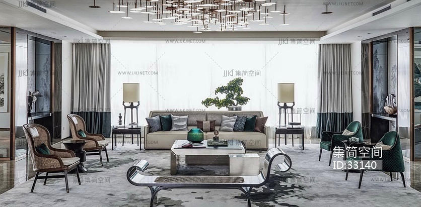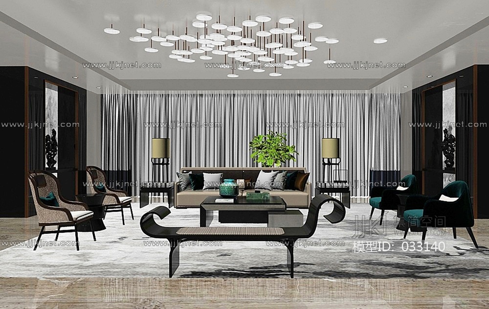 H33-0301现代轻奢新中式简欧会客厅沙发茶几休闲椅落地灯 3d模型下载 [模型ID:33140]