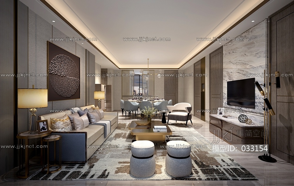 H11-0302新中式现代客厅餐厅沙发茶几电视柜落地灯 3d模型下载 [模型ID:33154]