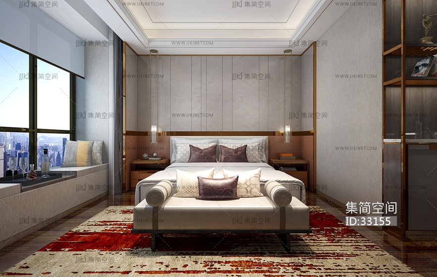 H12-0302现代轻奢卧室床床头柜飘窗床尾凳 3d模型下载 [模型ID:33155]