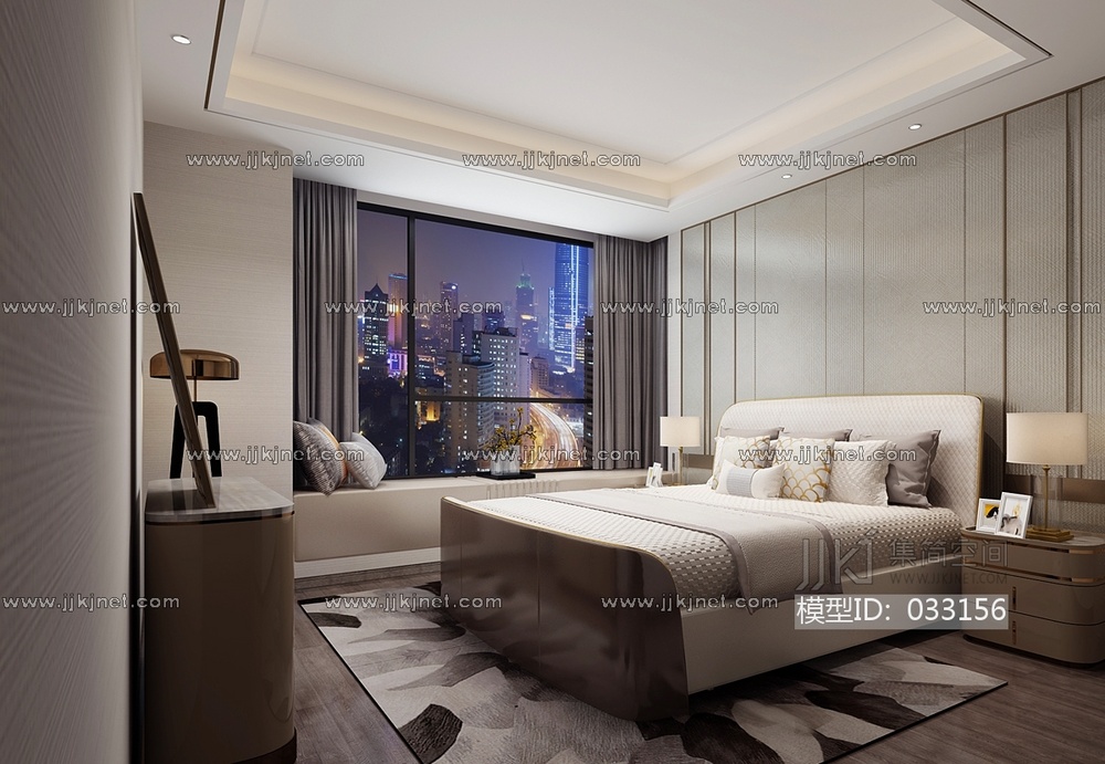 H13-0302现代轻奢港式卧室床床头柜 3d模型下载 [模型ID:33156]
