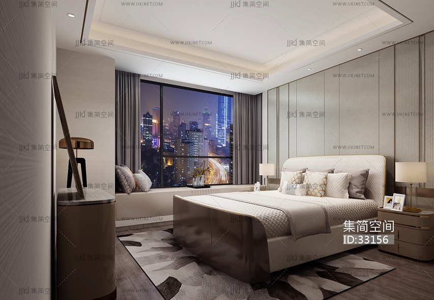 6法式中古家居卧室_主卧_飘窗卧室_高级灰卧室3D模型cr3d模型下载