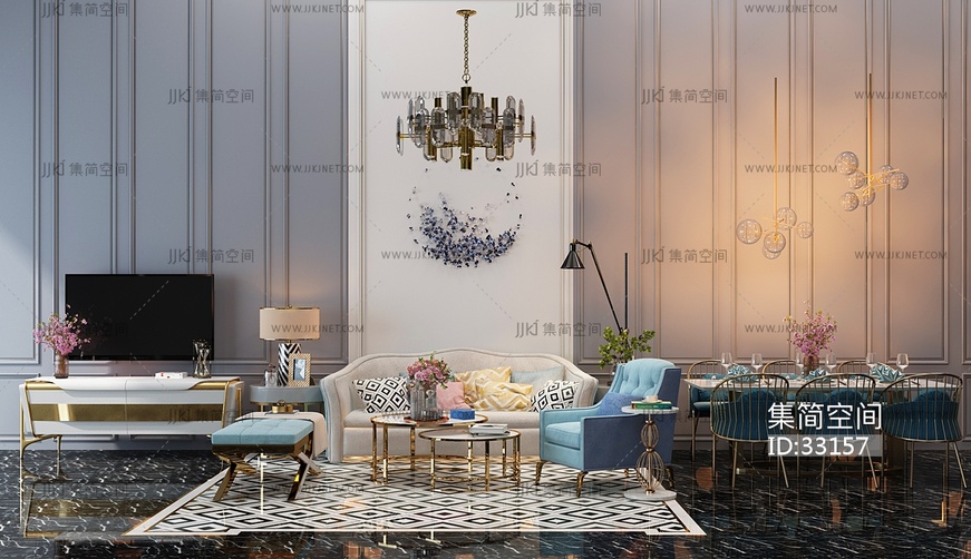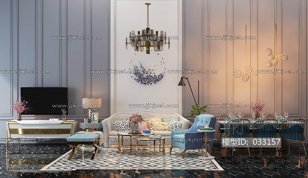 H01-0304欧式美式新古典沙发茶几电视柜餐桌椅 3d模型下载 [模型ID:33157]