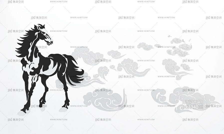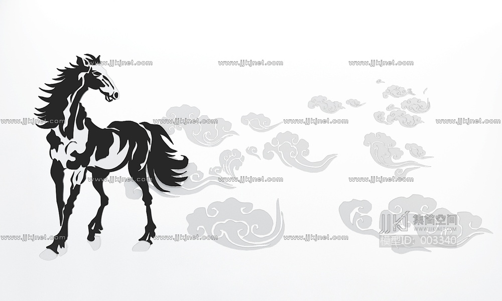 20180218-020剪影铁艺骏马祥云挂饰挂件 3d模型下载 [模型ID:3340]