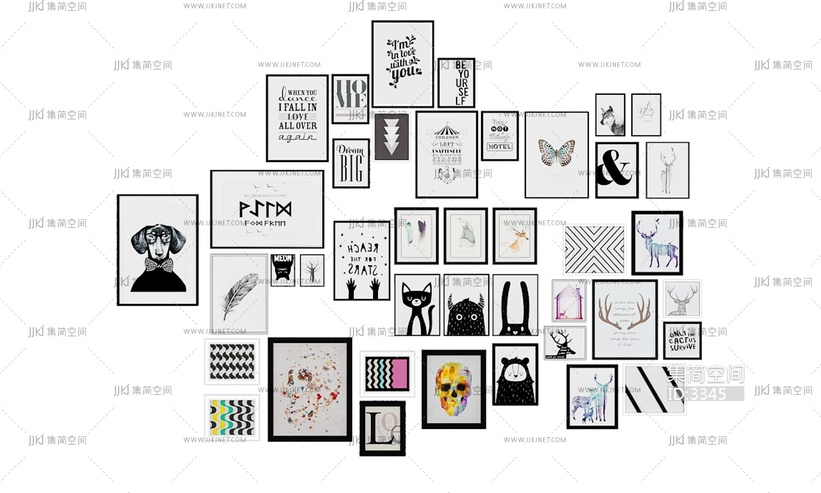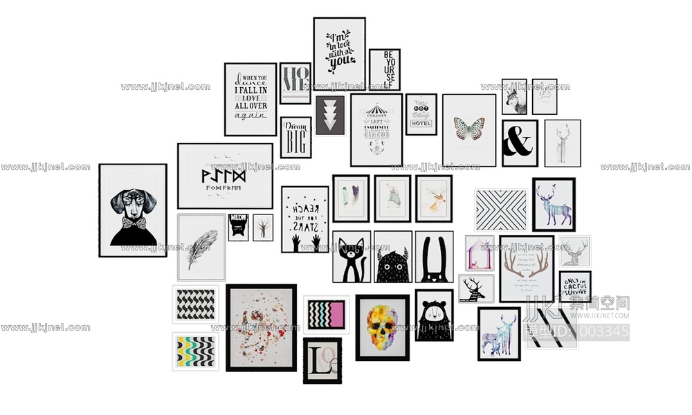 20180219-004北欧现代装饰画挂画黑白照片墙 3d模型下载 [模型ID:3345]