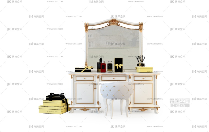 古典雕花轻奢梳妆3d模型下载