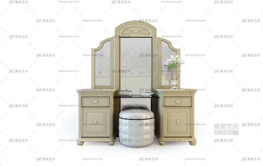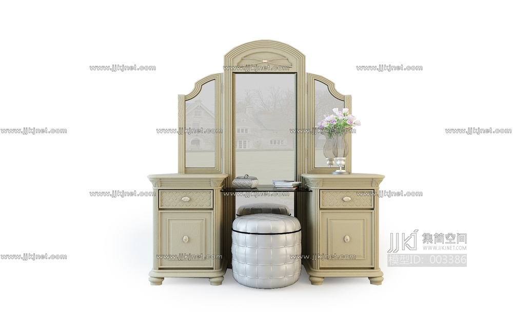 H05-0502欧式梳妆台皮墩 3d模型下载 [模型ID:3386]