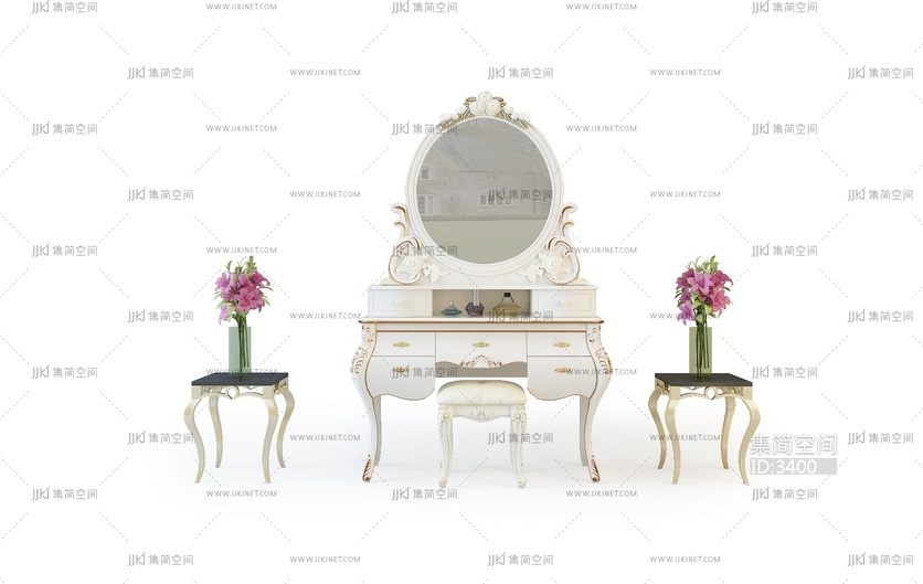 Z02-0502欧式雕花梳妆台 3d模型下载 [模型ID:3400]
