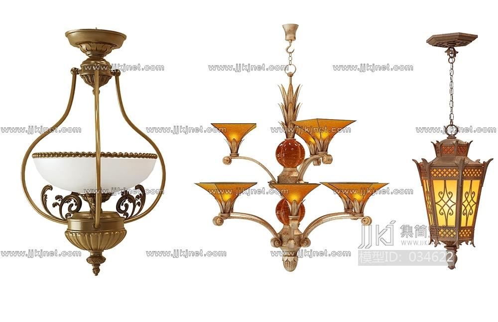 H18-0308美式欧式古典东南亚铁艺金属吊灯 3d模型下载 [模型ID:34622]