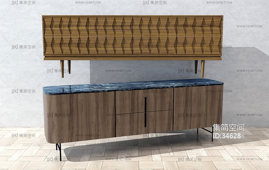 H20-0308现代边柜电视柜组合 3d模型下载 [模型ID:34628]