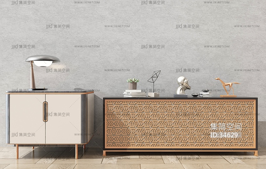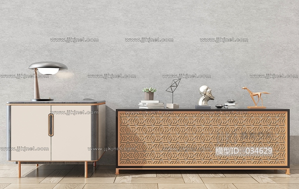 H21-0308现代新中式装饰柜床头柜边柜电视柜 3d模型下载 [模型ID:34629]