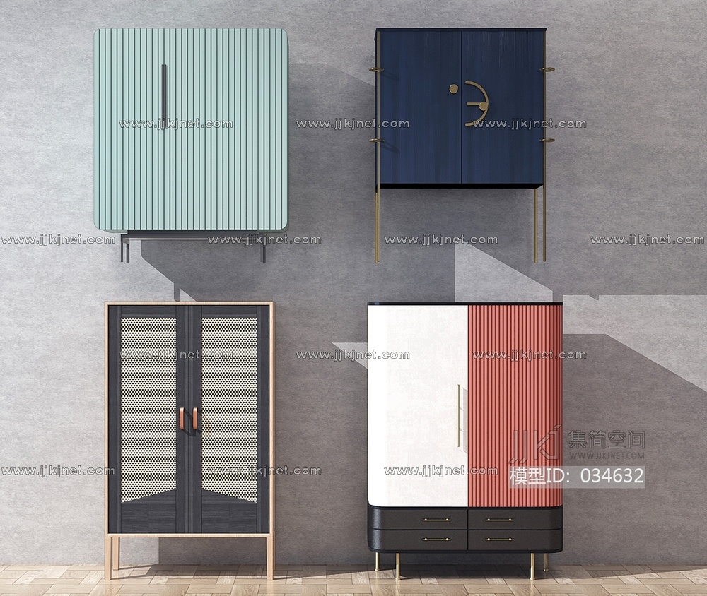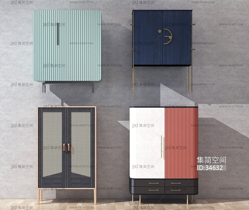 H24-0308现代简欧轻奢边柜玄关柜装饰柜边柜组合 3d模型下载 [模型ID:34632]