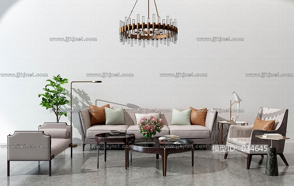 现代布艺沙发茶几组合3d模型下载