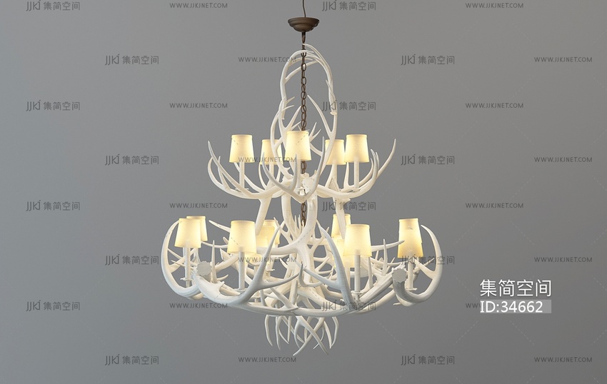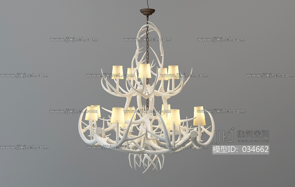 H15-0315美式欧式羊角鹿角吊灯 3d模型下载 [模型ID:34662]