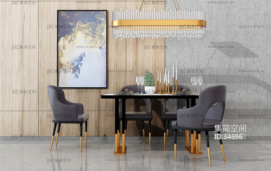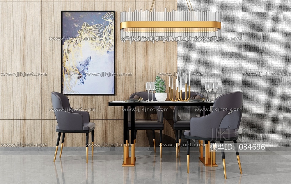 H10-0318现代简欧轻奢餐桌椅组合 3d模型下载 [模型ID:34696]