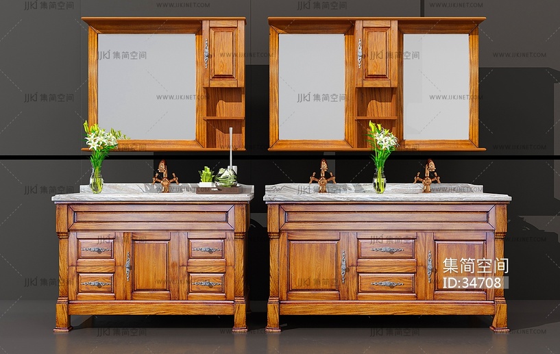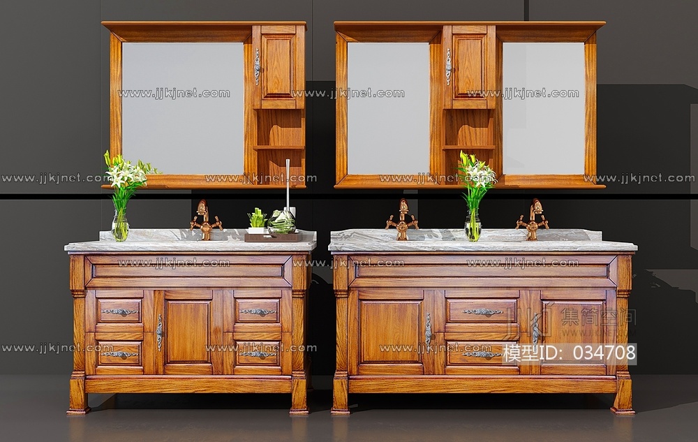 H05-0327美式实木浴室柜 美式卫浴用品 台盆柜 洗手台 卫浴镜 3d模型下载 [模型ID:34708]