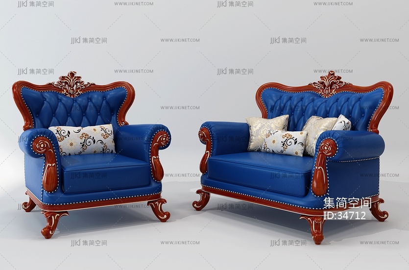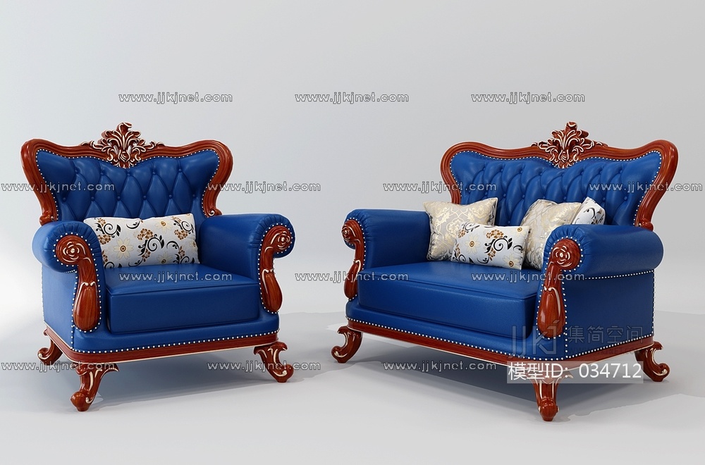 H09-0327美式欧式古典单人沙发组合 3d模型下载 [模型ID:34712]