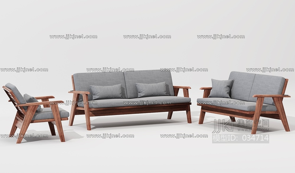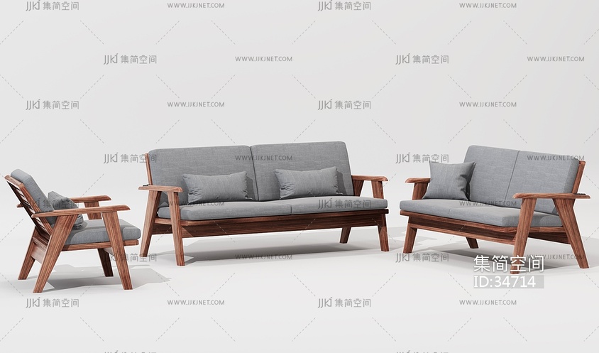 H11-0327北欧休闲沙发椅子组合 3d模型下载 [模型ID:34714]