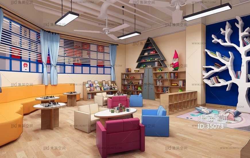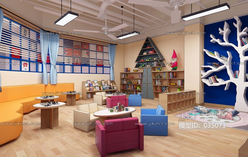 Z38-0302现代幼儿园儿童图书室教室 3d模型下载 [模型ID:35073]