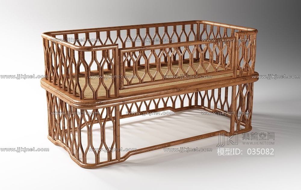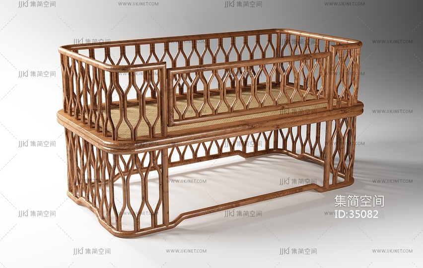 H09-0328璞素新中式木质婴儿床 3d模型下载 [模型ID:35082]