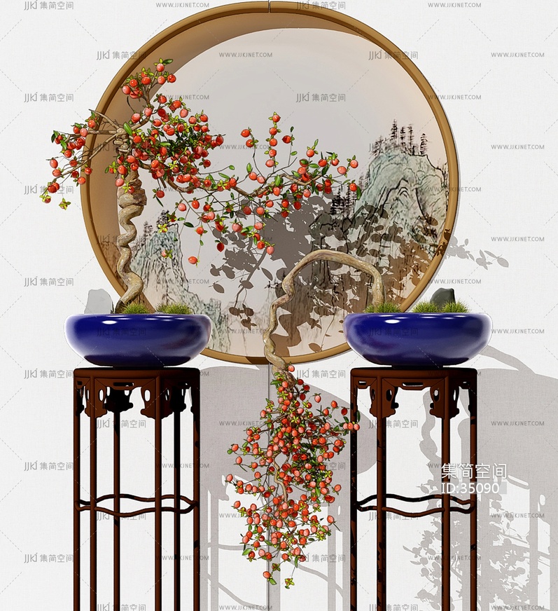 H18-0328中式植物盆景花盆花架摆台盆栽 3d模型下载 [模型ID:35090]