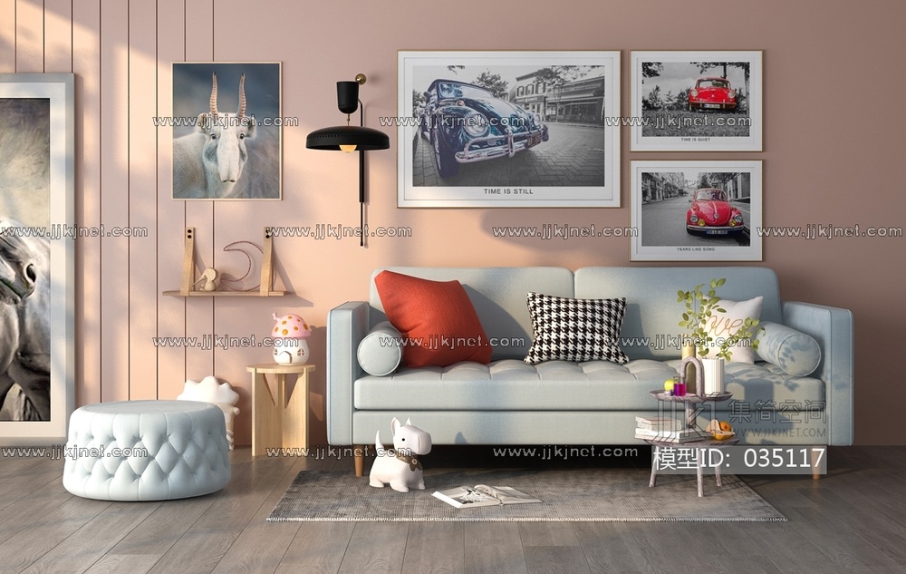 Z28-0304北欧现代多人沙发茶几沙发墩皮墩 3d模型下载 [模型ID:35117]