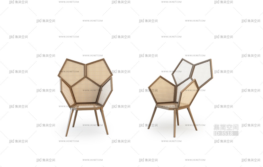 北欧藤编户外椅竹木椅子竹子椅子3D模型3d模型下载