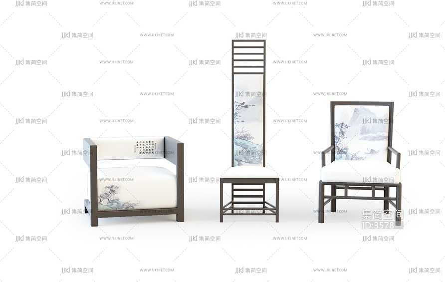 X23-0425中式休闲椅 3d模型下载 [模型ID:3578]