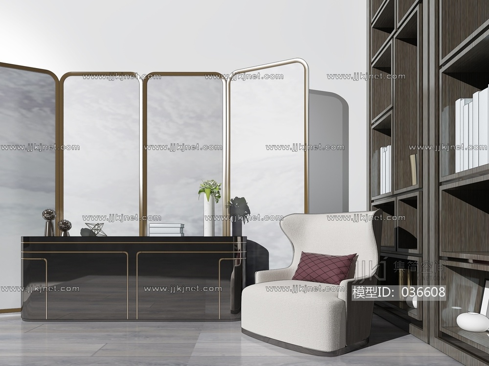H18-0329简欧式现代轻奢单人休闲沙发装饰柜边柜屏风 3d模型下载 [模型ID:36608]