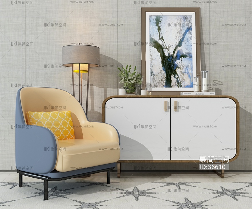 H21-0329现代轻奢简欧式单人沙发休闲椅边柜 3d模型下载 [模型ID:36610]