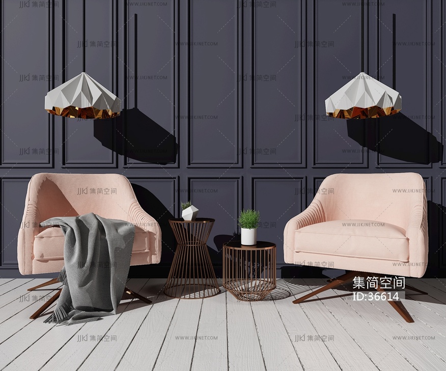 H30-0329现代单人休闲椅子边几 3d模型下载 [模型ID:36614]