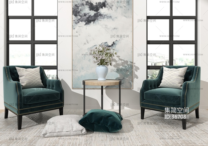 H37-0329简欧式现代单人沙发椅子边几花瓶 3d模型下载 [模型ID:36708]