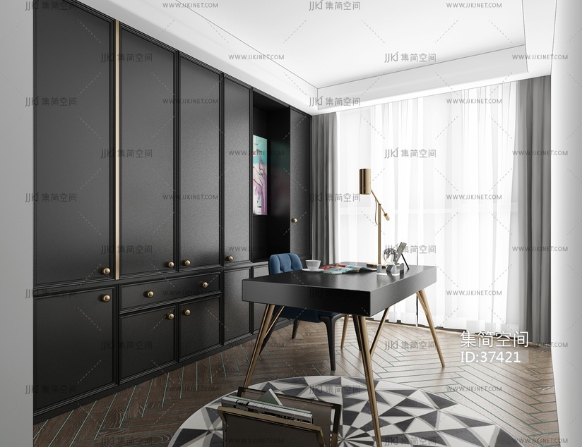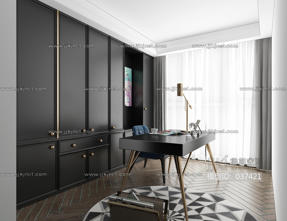 Z18-0403现代书房书桌椅 3d模型下载 [模型ID:37421]