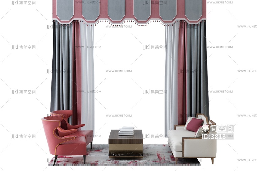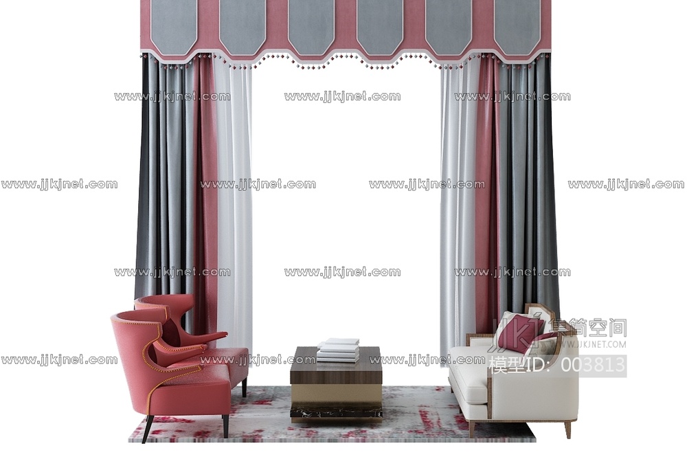 G13-0510现代欧式茶桌椅组合窗帘 3d模型下载 [模型ID:3813]