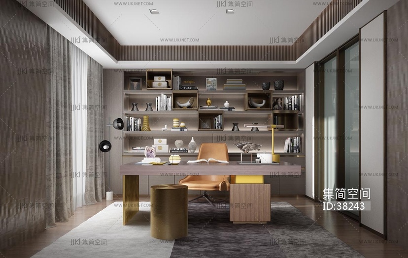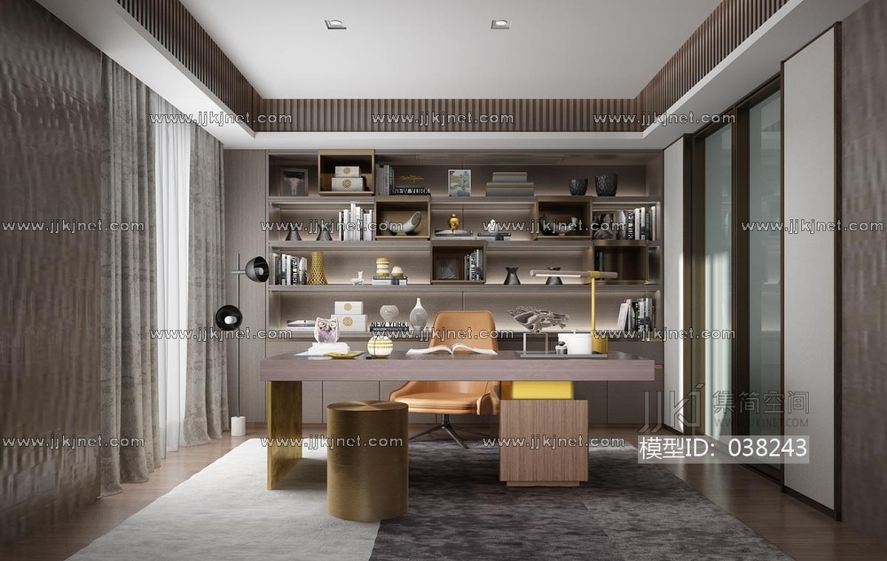 Z21-0402现代轻奢书房书桌椅书柜书籍 3d模型下载 [模型ID:38243]