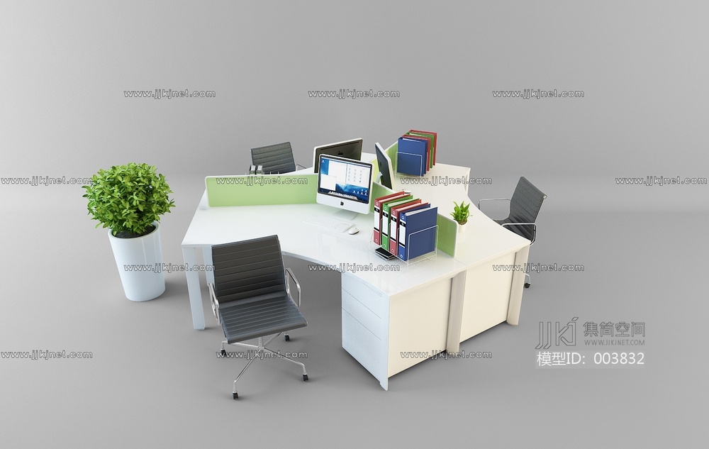 现代文员办公桌椅组合_白领员工办公桌办公椅_办公用品3D模型3d模型下载