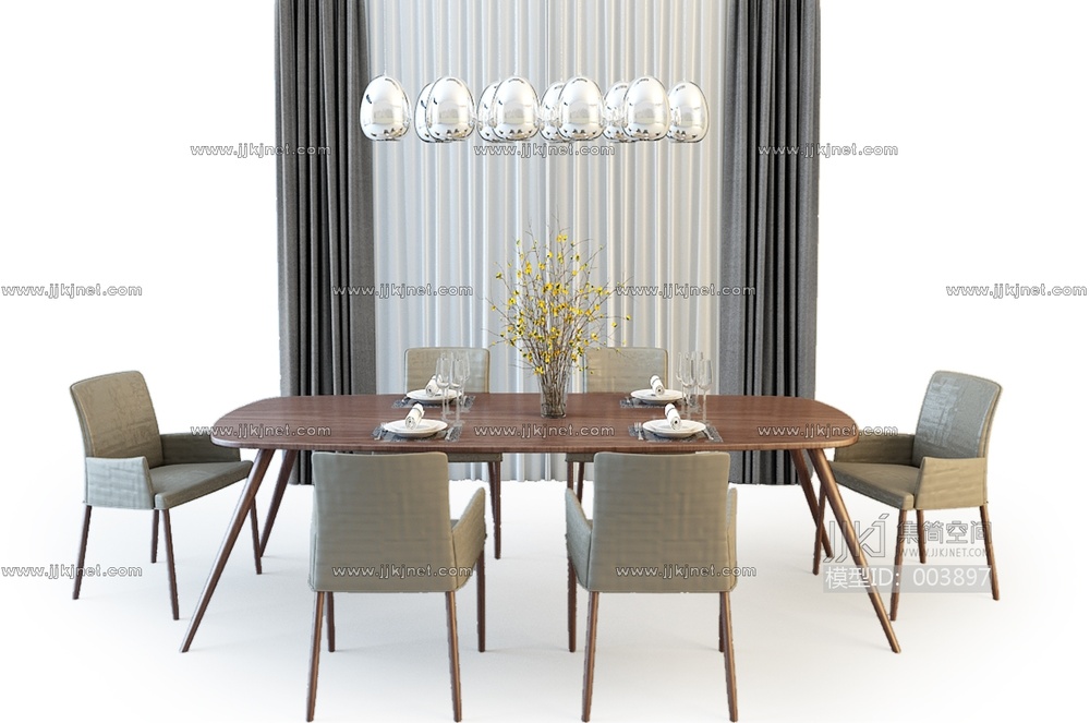 H07-042现代餐桌椅组合 3d模型下载 [模型ID:3897]